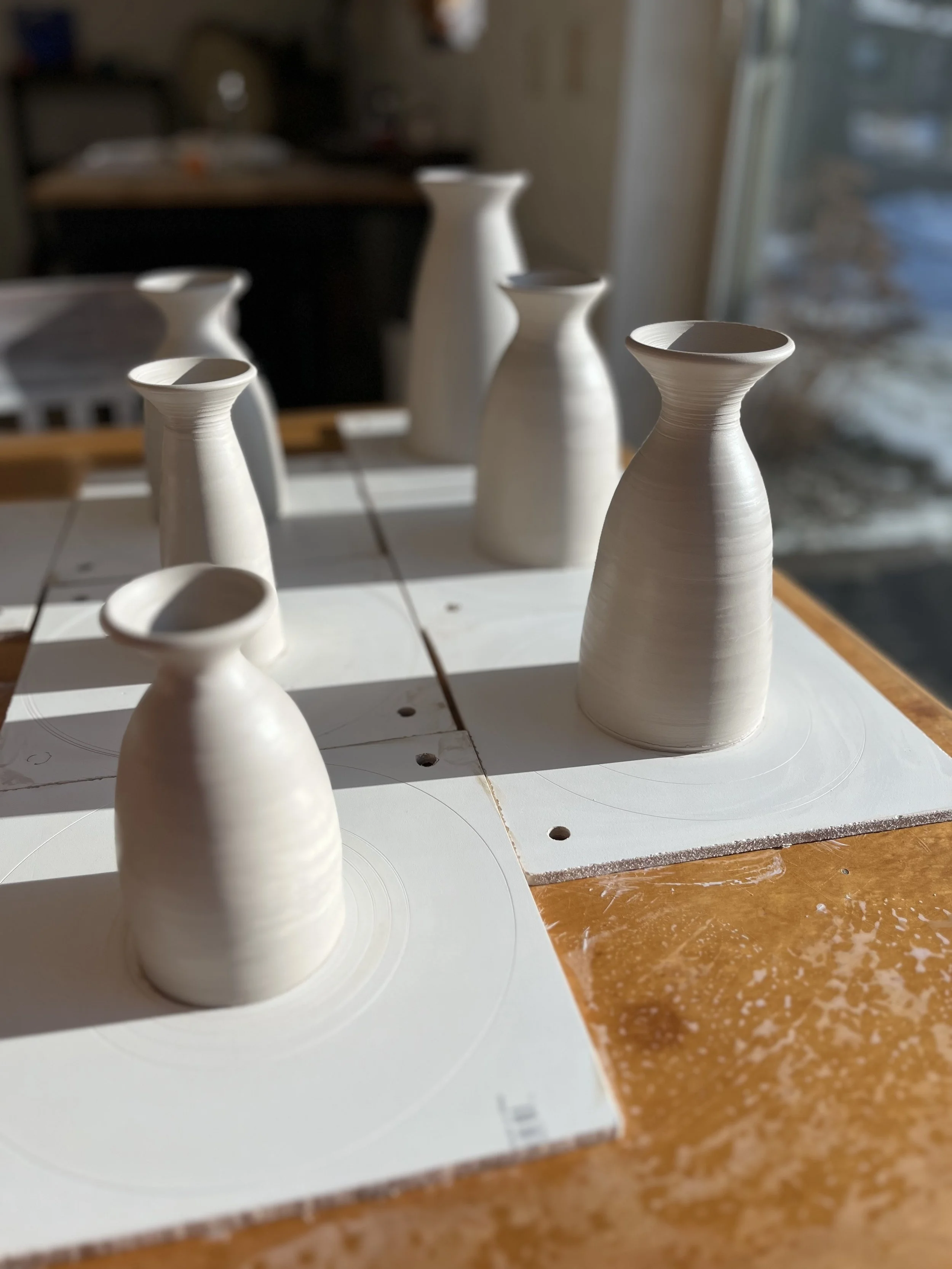 A collaborative creation. Skip the back-and-forth of traditional commissions and step into the studio to co-create. This session allows you to observe the making process and suggest adjustments as the piece takes shape. Whether it’s tweaking the height of a vase or the taper of a bowl, your real-time input directs my hands, resulting in a bespoke piece that carries both our creative marks. Deposit applied to materials and firing of final piece.